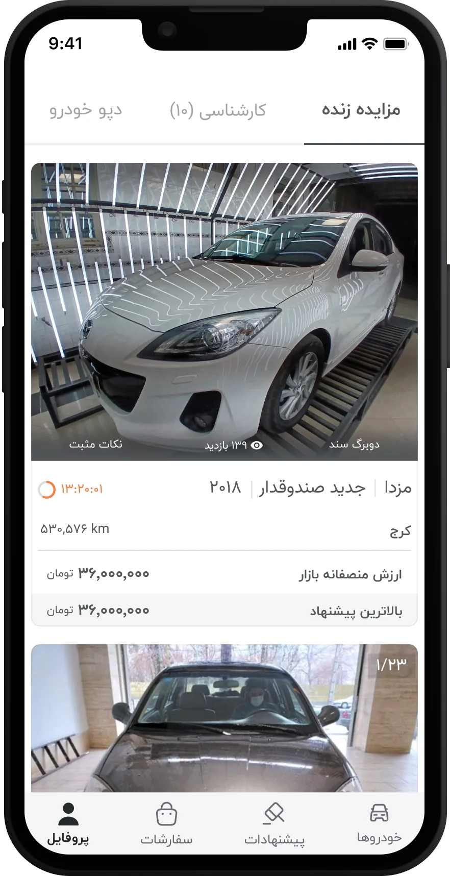خودرو۴۵ با ایجاد پلتفرمی امن و تسهیلگر، تجربه‌ای متفاوت از خرید خودرو را برای خریداران خودرو فراهم کرده است. با گزارش‌های کارشناسی گارانتی‌شده و تاییدیه حقوقی تضمینی، شما می‌توانید در صدها مزایده آنلاین روزانه از سراسر کشور شرکت کنید و با آسودگی، خودروی مورد نظر خود را انتخاب کنید. تمامی مراحل، از کارشناسی تا ارسال خودرو، توسط خودرو۴۵ انجام می‌شود. این فرآیند از طریق اپلیکیشن اختصاصی خودرو۴۵ برای شرکای تجاری در دسترس است.
