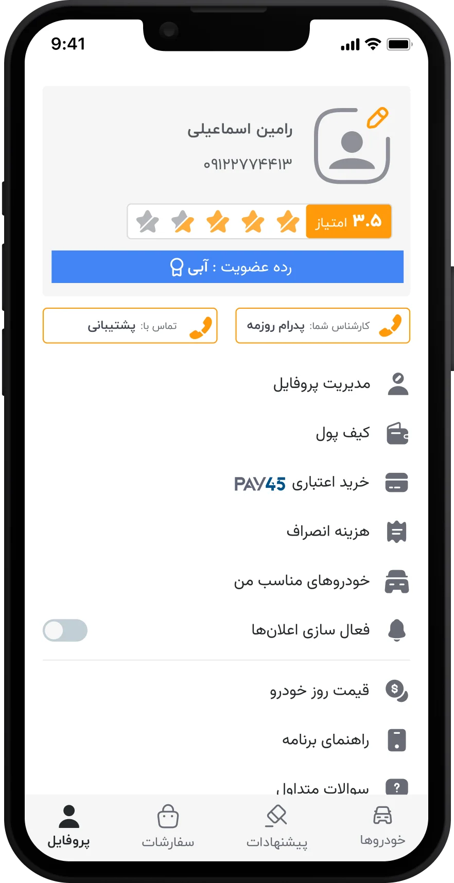 بعد از ایجاد درخواست در قسمت ثبت‌نام شرکای تجاری و احراز هویت توسط کارشناسان خودرو۴۵، اپلیکیشن اختصاصی در اختیار شما قرار خواهد گرفت.