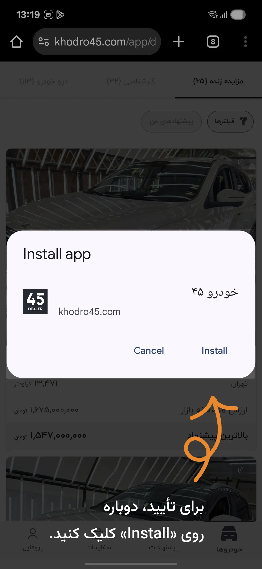 برای تأیید، دوباره روی «Install» کلیک کنید.